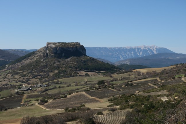 Nous avons garé les voitures au bord de la route dans le hameau de Gresse, à 825 m. d’altitude, qui fait partie de la commune de Mévouillon. Après un petit échauffement au fond de la vallée, et après un belle montée nous arrivons sur le plateau qui autrefois abritait la Fort de Mévouillon, qui fut la demeure, pendant plusieurs siècles, des seigneurs de Mévouillon. En 1317, le dernier représentant, criblé de dettes, vend la seigneurie au Dauphin. Le fort sera ensuite le théâtre de violences pendant les guerres de religion. En 1640, Richelieu ordonne la destruction du fort. Depuis cette plateforme qui culmine à 1100 m., la vue est imprenable sur les vallées et les montagnes environnantes. Après une petite pause, nous redescendons le long de la falaise pour nous retrouver au col de Riousse à partir duquel nous suivons une piste qui nous conduit au Pas de Bouvrège où nous prenons quelques forces avant de reprendre le sentier qui monte au col de Croc à 1343 m. De là, la vue est superbe sur le Ventoux, la montagne du Buc, la montagne de Chamouse, et plus loin, les cimes enneigées.