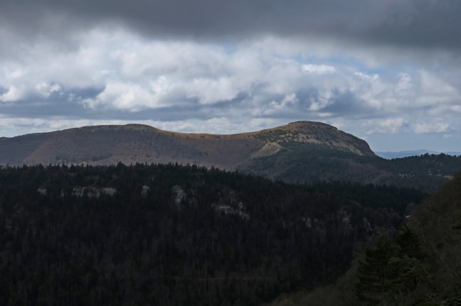 Nous sommes donc redescendus en direction du Bonnet Rouge vers le Col d’Arron où nous étions un peu mieux abrités. Après une halte dans une clairière pour reprendre des forces, nous avons entamé l’ascension vers la croix du Bonnet Rouge à 1645m d’altitude.