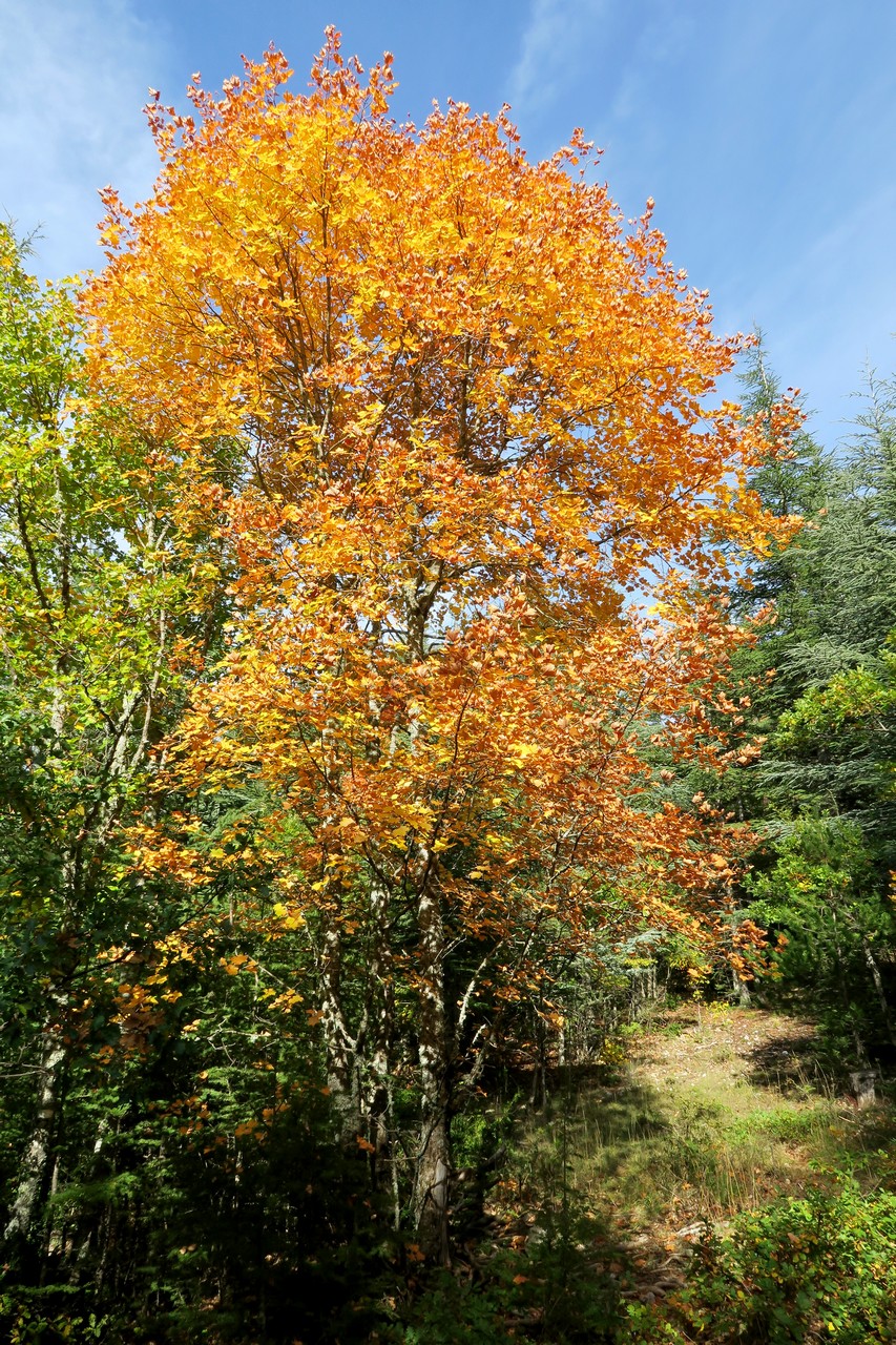 Après ce repos bien mérité nous reprenons notre chemin, bientôt en descente, sur un sentier qui nous conduit au Jas de Landerot. Enfin c’est le retour vers notre point de départ, toujours à travers la forêt multicolore que nous procure l’automne.