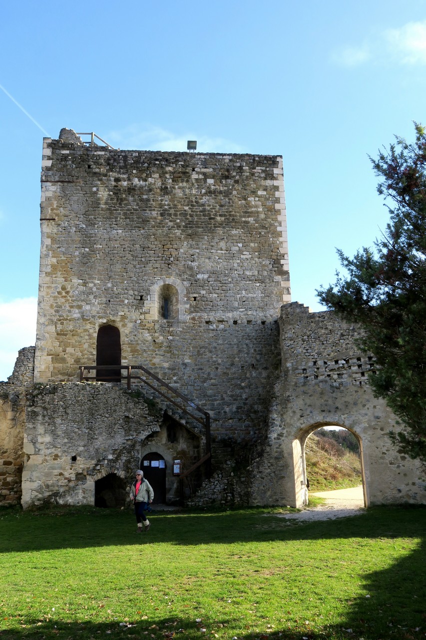 Ensuite, Daniel avait prévu une visite du donjon et alentours du château. Nous sommes donc montés sur la terrasse du donjon, ce qui nous a permis de profiter d’une belle vue jusqu’au synclinal de Saou et les Trois Becs et de visiter la petite chapelle attenante.