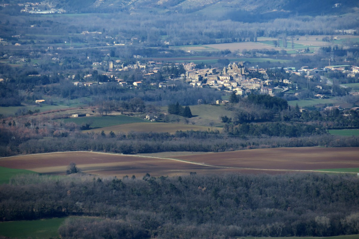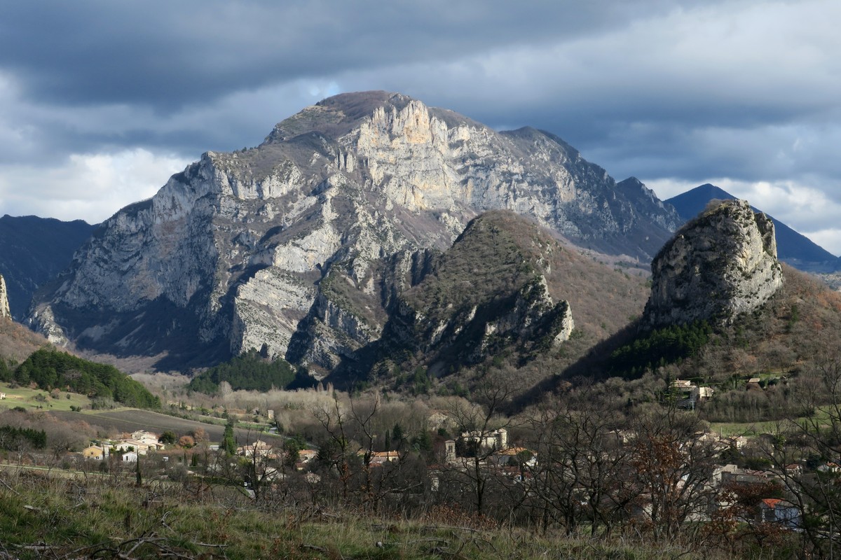 Nous entamons la descente avant notre pause, l’endroit choisi, le Pas de l’Echelette se trouvant être un superbe balcon sur la vallée de la Drôme et pour nous saluer le ciel se dégage, le soleil éclairant la vallée. Superbe vue sur Crest, Aouste-sur-Sye, Mirabel-et-Blacons.