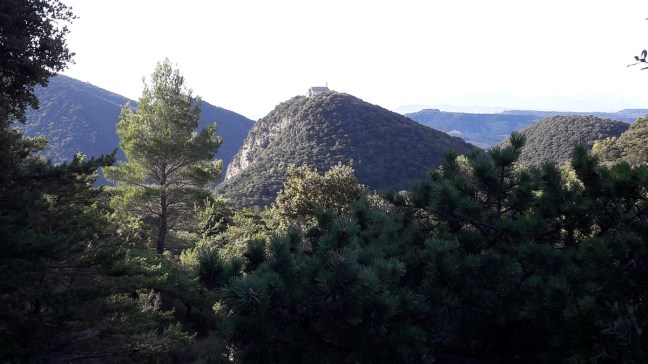 Par un petit chemin sous des chênes verts nous atteignons la Chapelle ND de Beauvoir. Très belle vue sur la plaine et la montagne de la Lance.
