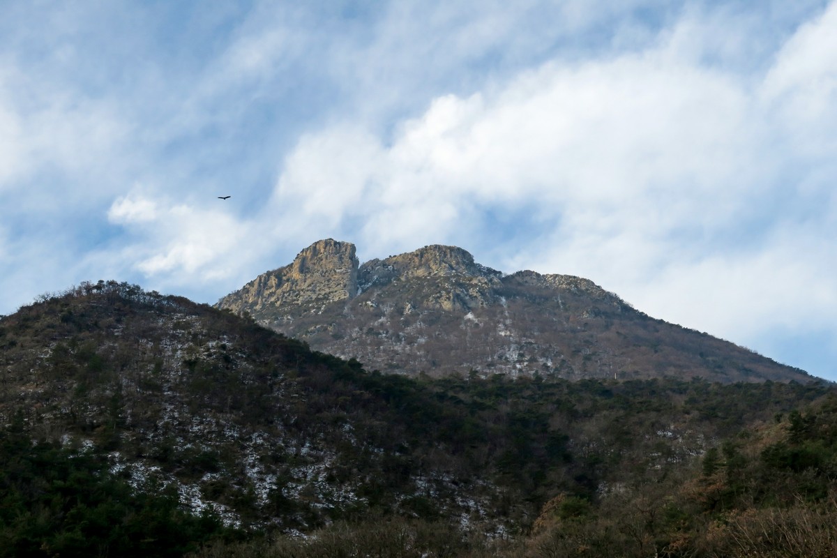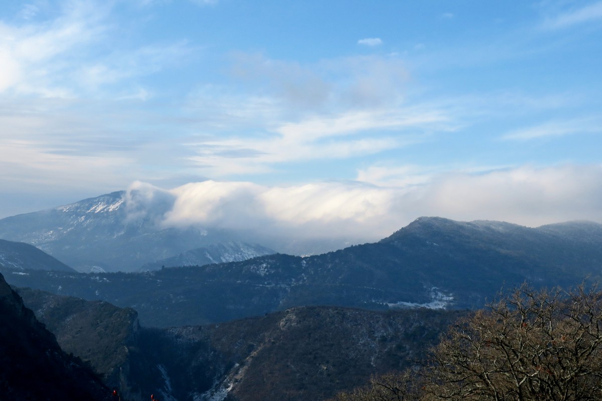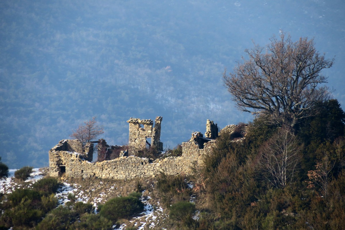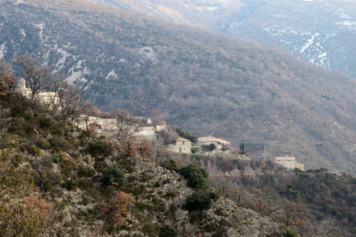Un petit vent glacial nous a accompagnés jusqu’au vieux village de Chaudebonne. Le chemin exposé au soleil avec de très belles vues sur la vallée serpente jusqu’au Col Renard. Un majestueux vautour, juché sur un rocher dominant le chemin, vérifiait avec gourmandise l’avancée des randonneurs, si rares depuis quelques mois. Ces derniers étaient en forme et le rapace a fini par s’envoler sur fond de ciel bleu.