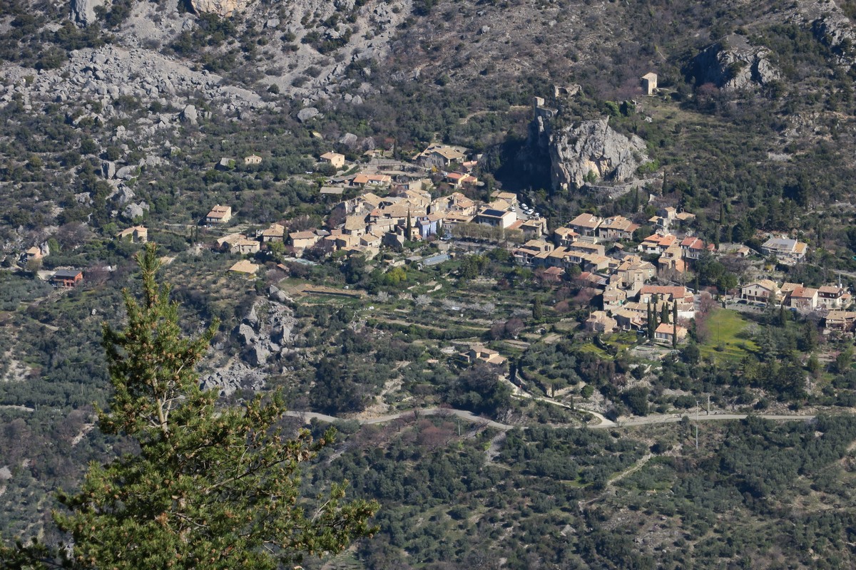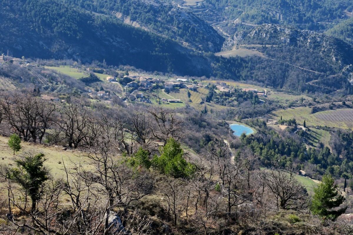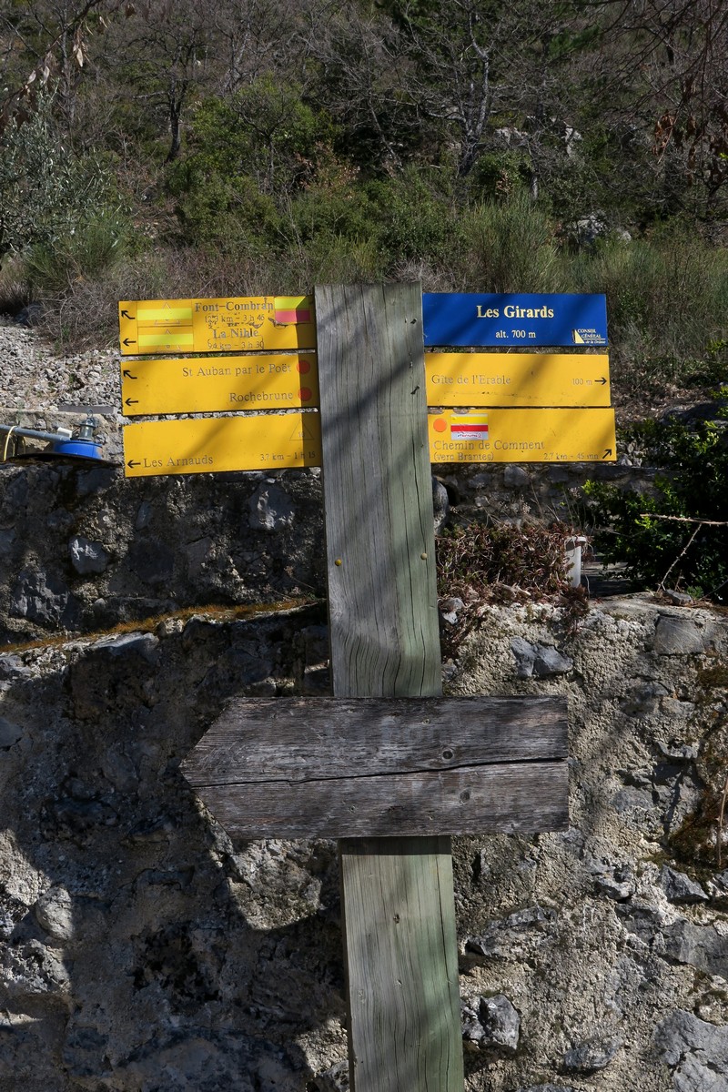 Notre point de départ, ce dimanche, était Plaisians, peit village isolé, aux limites de la Drôme et du Vaucluse, à 11 km de Buis-les-Baronnies, face à l’imposant Ventoux. Un peu de fraîcheur en début de journée, mais le beau temps était de la partie. En réalité, notre rando démarrait à partir d’un des hameaux les plus élevés de la commune ; les Girads, à 700m d’altitude. Hameau que nous avons traversé au milieu des aboiements de nombreux chiens avant d’atteindre la chapelle Saint Roch. Cette chapelle,construite entre 1830et 1832 a subi quelques travaux et reste de nos jours encore en service.
