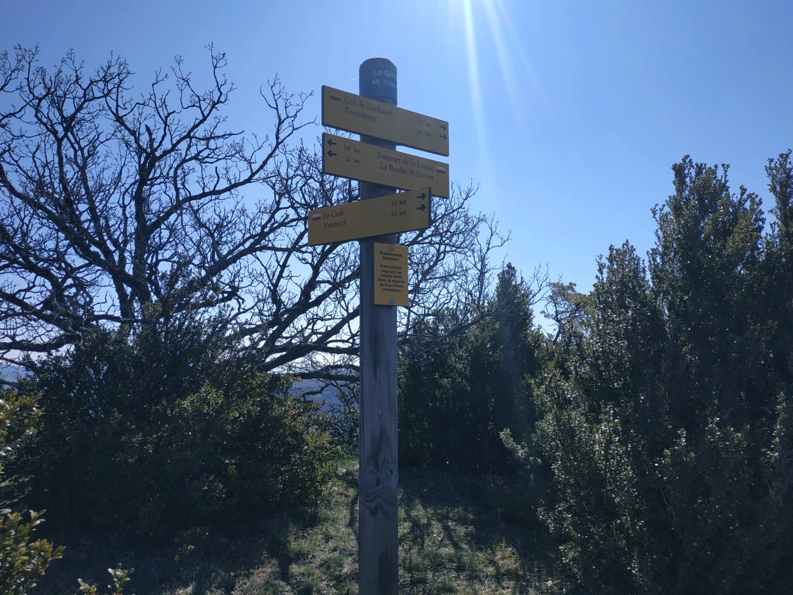 Partis de la Combe de Sauve, nous atteignons en un peu moins de 2h le poteau « la Grille » ; sur le chemin nous enlevons quelques branches gênantes et améliorons les balises.