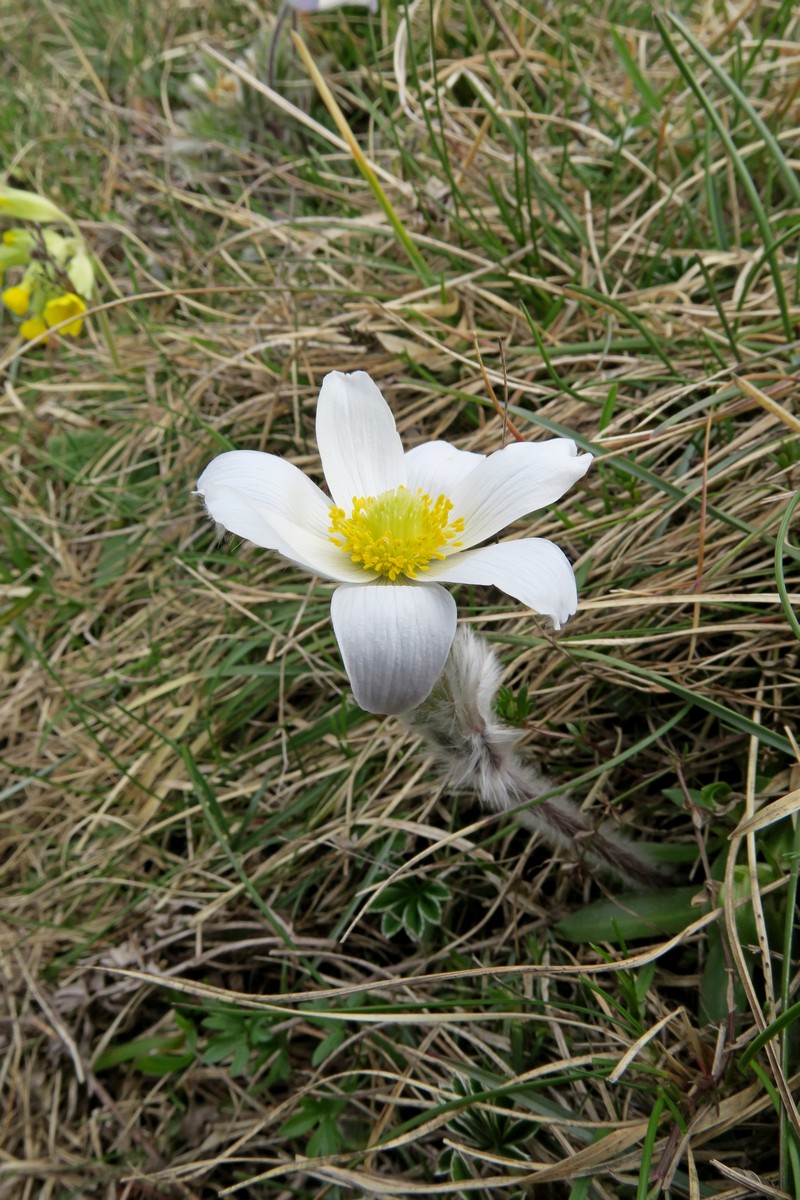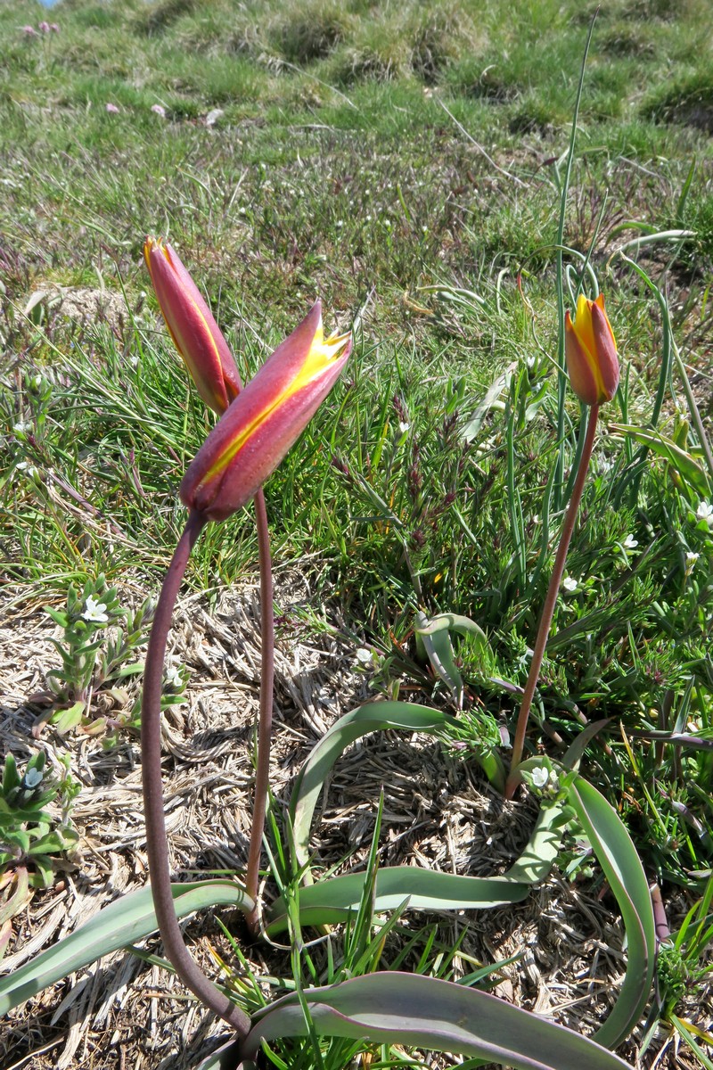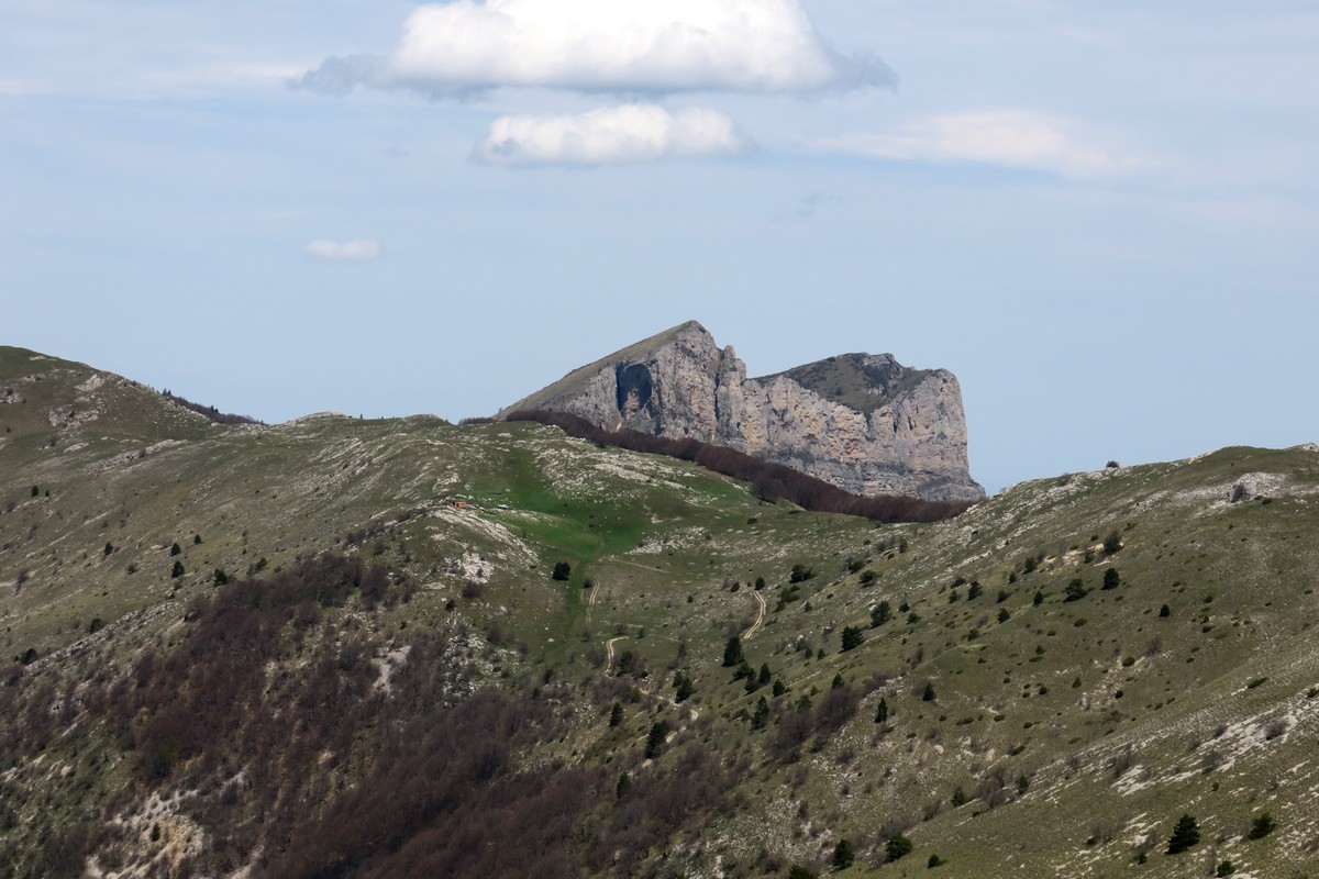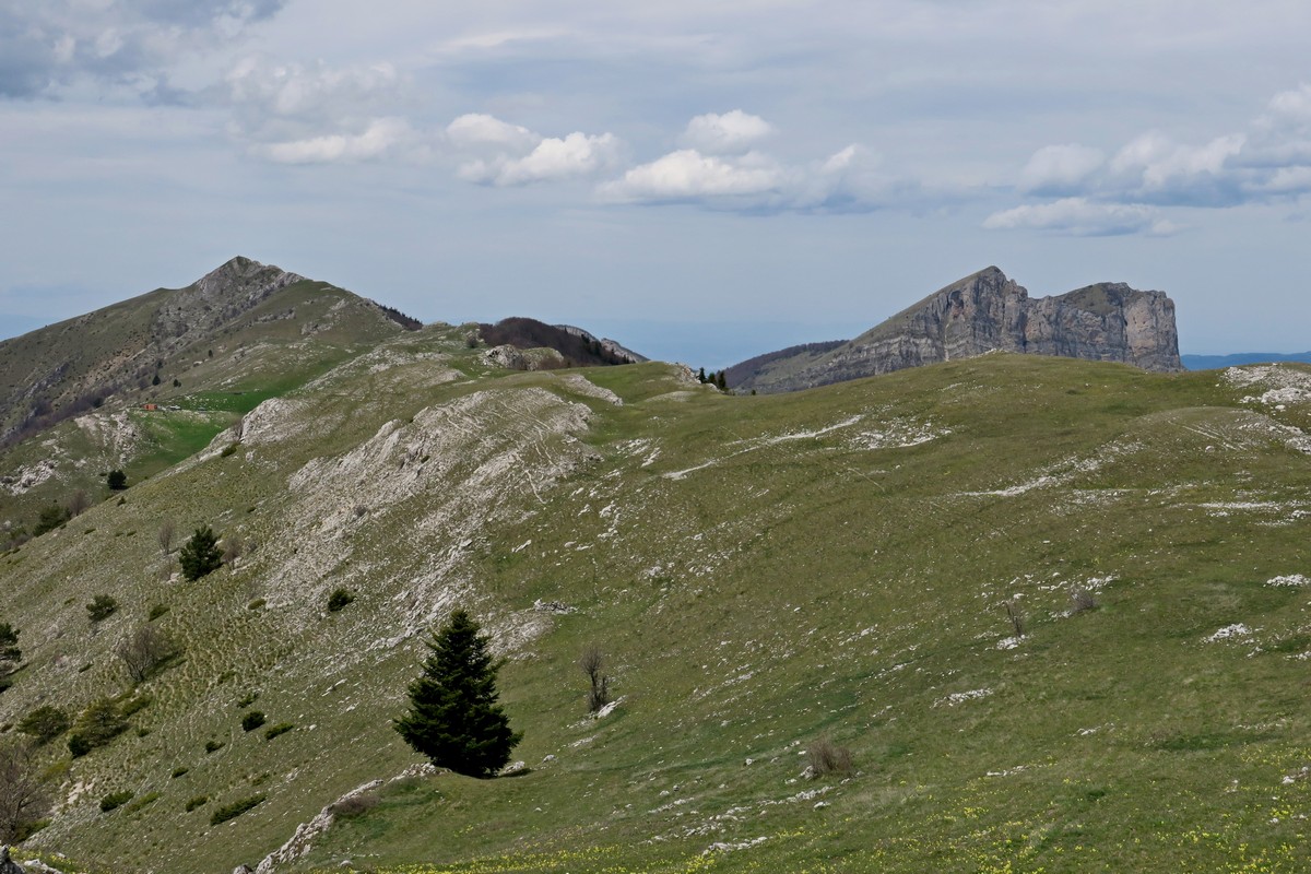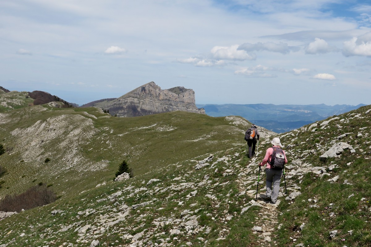 Le sentier est loin d’être de niveau, nous passons à 1500m. avant de redescendre au col du Puzaou à 1439m. puis la Grand Plaine à 1510m. d’où nous commençons à voir le sommet du Veyou et nous redescendons au Pré du Bœuf à 1428m. Tout au long de ce chemin nous profitons de la vue sur le Vercors et le Dévoluy sans oublier de profiter des tulipes, orchidées ou anémones qui se trouvent autour de nous avant d’attaquer la montée vers le Grand Delmas.