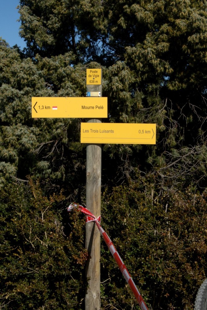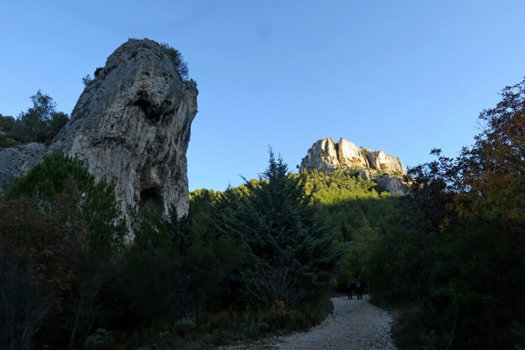 Nous sommes parvenus au Mourre de la Belle Etoile ( Mourre signifie colline ou mamelon) où sous nos pieds se trouve la fontaine de Vaucluse et ses mystères, et à travers les chênes verts nous sommes arrivés sur la piste des Trois-Luisants ( Lei Trelusent « Les Rochers Brillants » calcaire blanc),