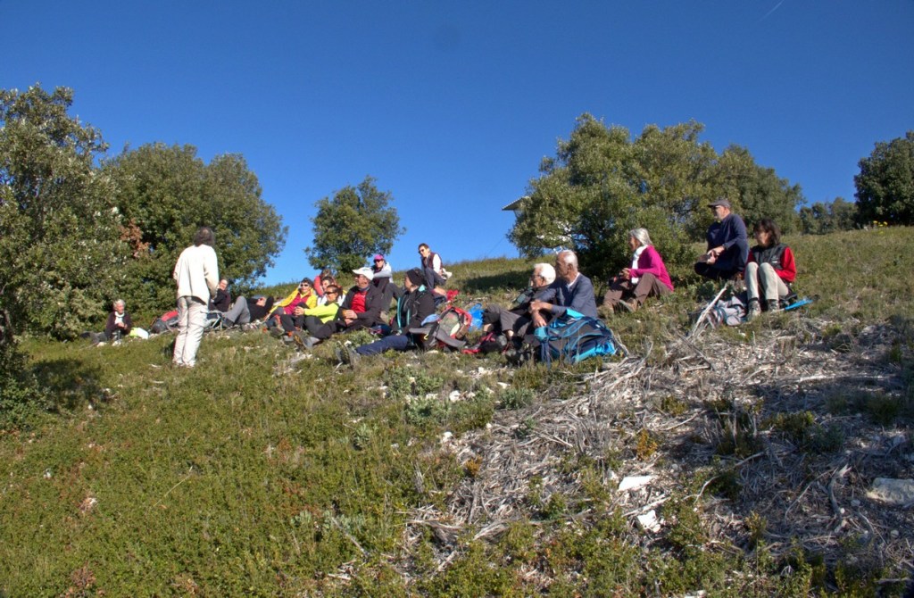 Arrivés à une vigie, nous avons profité d’ une belle vue sur la plaine du Vaucluse pour partager notre repas. Robert nous a conté en provençal l’aventure d’une bergère et de son bouc ce qui nous a bien fait rire.