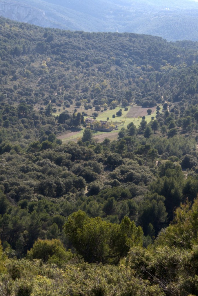 Nous avons repris notre chemin à la descente par un sentier qui nous amène au Mourre Pelé ( Lo Morre Pelat qui signifie colline pelée) qui débouche dans un fond de vallée où nous avons trouvé la ferme de Valescure ( qui veut dire vallée sombre, encaissée) qui à été restaurée par des bénévoles européens. Aujourd’hui elle sert d’abri pour les randonneurs.
