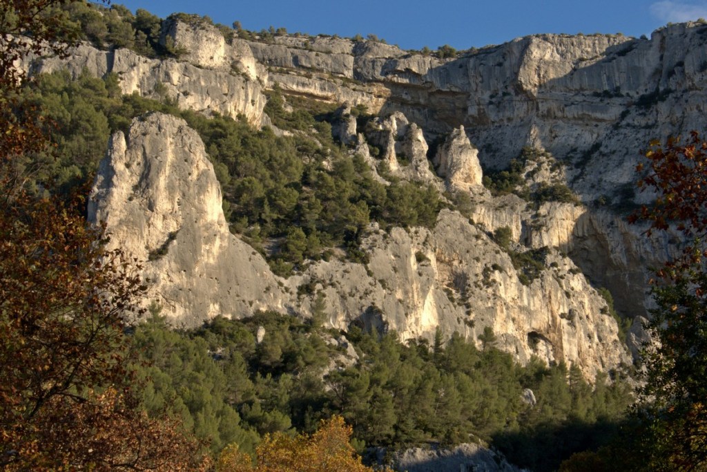 Nous avons laissé nos voitures en bordure de la route touristique qui mème à Gordes à la sortie de Fontaine de Vaucluse. A travers les rochers et les baumes nous avons remonté le vallon de la fontaine de l Oule (Oule en provencale signifie marmite ) pour parvenir sur plateau du Lauzas Nord ,