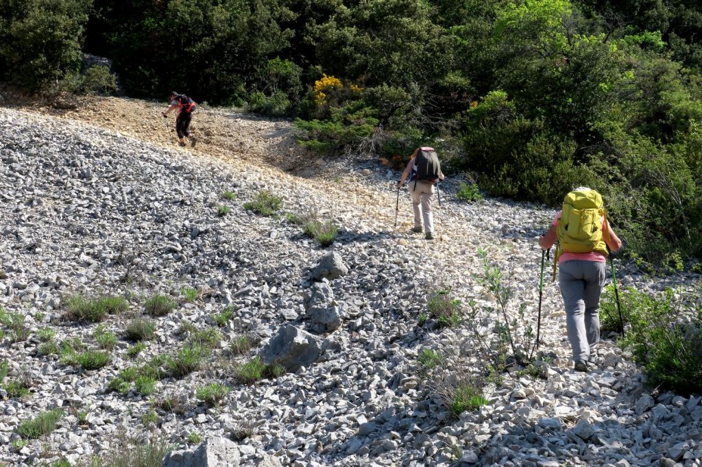 En effet, la pente devenait de plus en plus abrupte et après de nombreux arrêts pour observer la vallée du Toulourenc les dentelles de Montmirai et le Saint Amant. Nous sommes arrivés au sommet le la Plate où nous avons pique-niqué, sous le regard bienveillant du Mont Ventoux.