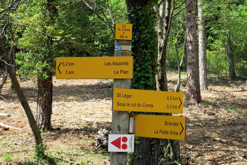 Nous avons longé la crête en direction du Pic du Comte, qui culmine à 1156 m d’altitude. Puis nous avons enfin attaqué la descente ombragée vers le col du Comte, carrefour de plusieurs chemins de randonnée.
