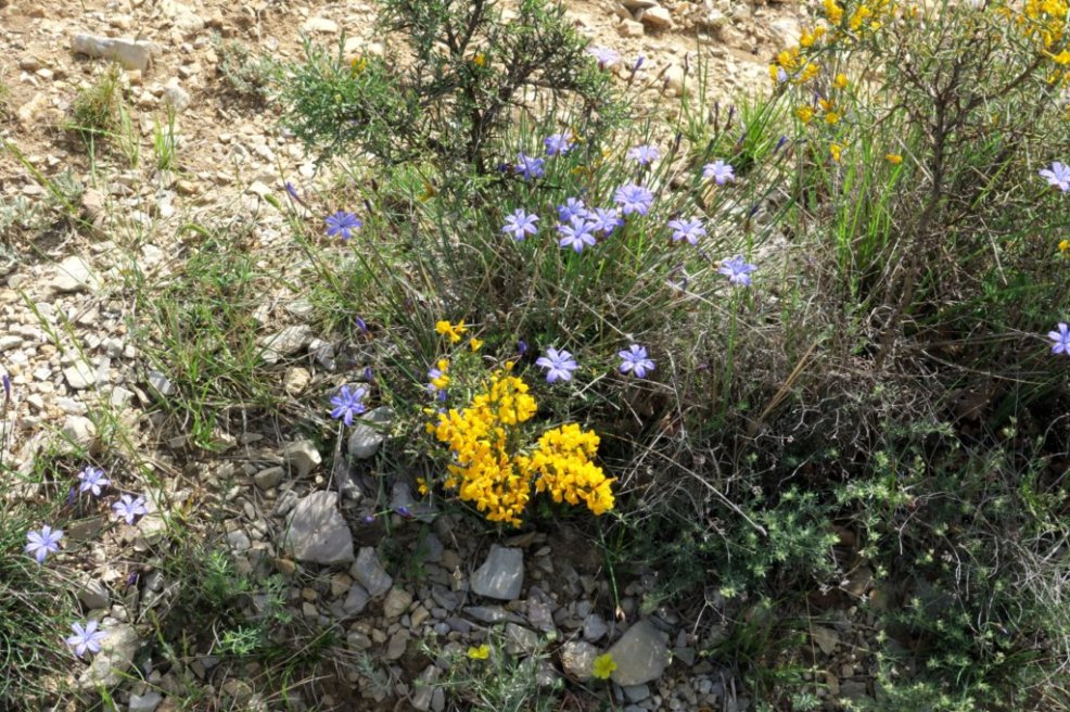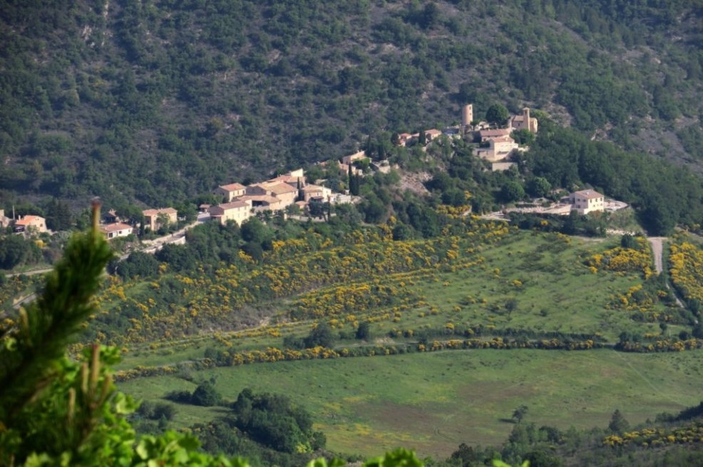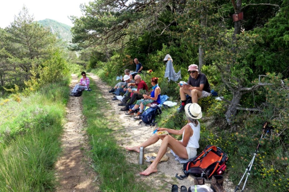 Dès notre départ près du Col d’Ey, la chaleur se fait sentir sur la piste qui longe la montagne de la Fournache en montant vers le col de Plates; il est pourtant à peine 9 heures. Nous dominons la vallée de l’Ennuyé et les villages de Sainte-Jalle et Rochebrune. Après 3 km nous arrivons aux ruines d’une ferme au-dessus du col du Linceuil.