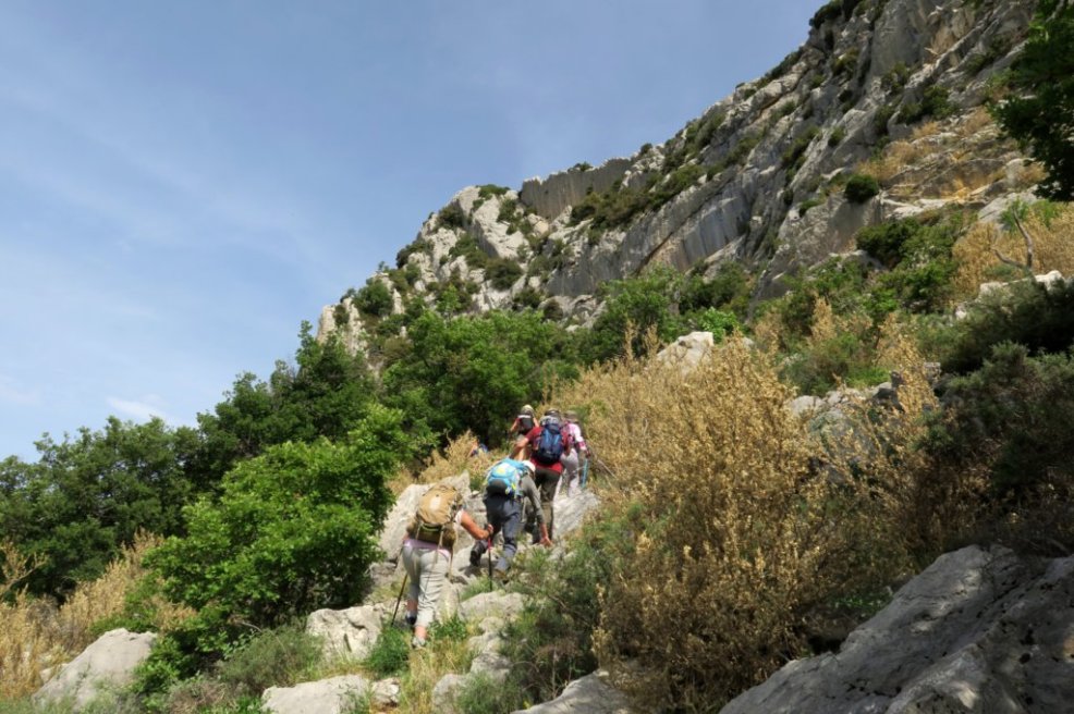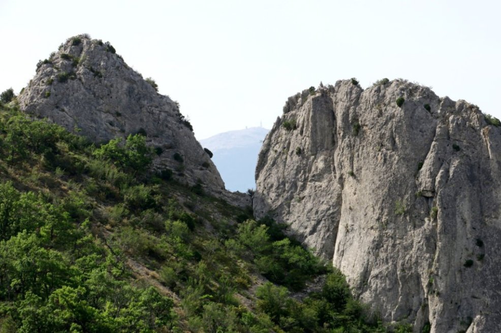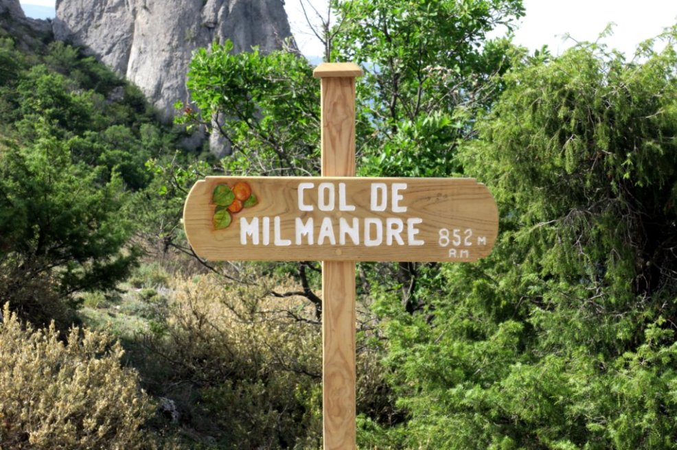 Nous descendons jusqu’au col de Milmandre d’où nous prenons un petit sentier qui longe la falaise de la Baume Noire. Ce chemin a été tracé et débroussaillé par Alice et une petite équipe. Nous atteignons la grotte des maquisards, large abri naturel qui domine Beauvoisin et offre une vue sur le Ventoux. Très isolé et difficile d’accès, cet abri des plus sommaires est occupé dès le 12 mars 1943 par quelques réfractaires du STO. Ils seront ravitaillés par Louis Borel, paysan de Beauvoisin, pivot de la résistance locale. Ils gagneront ensuite le camp de la Fournache.