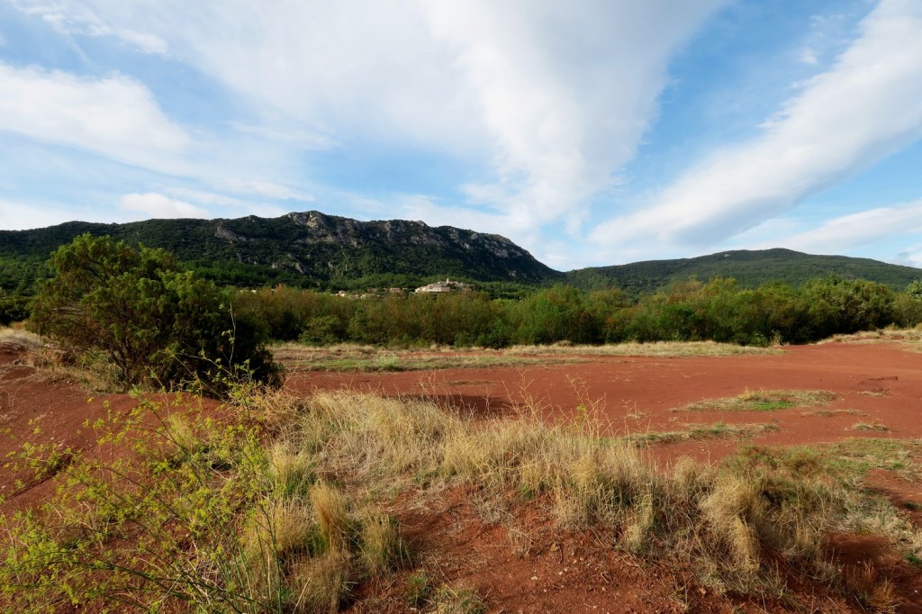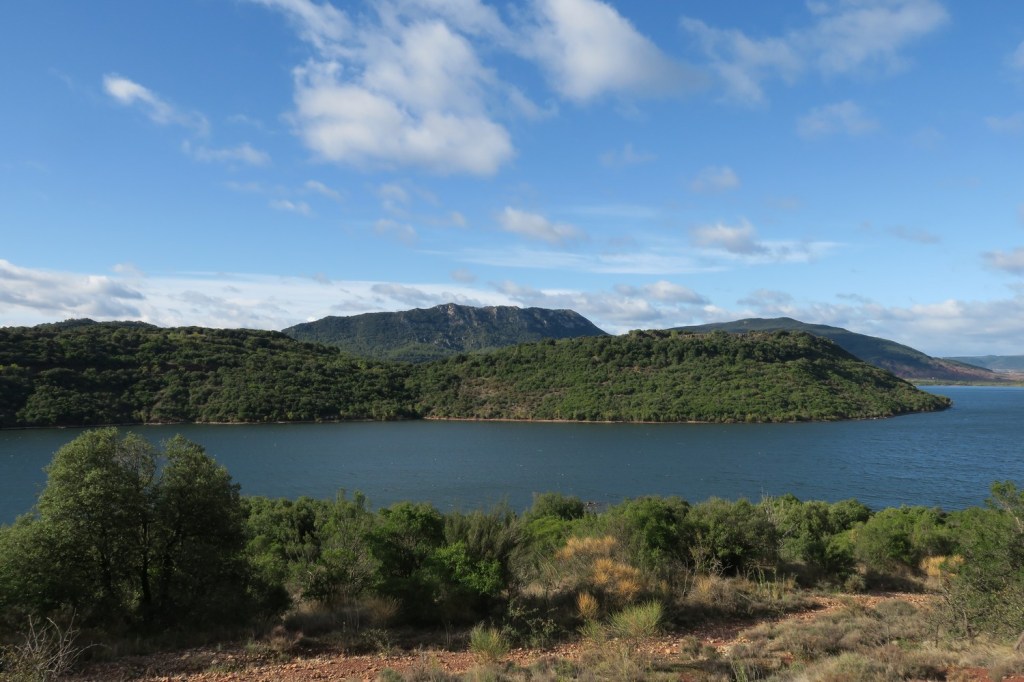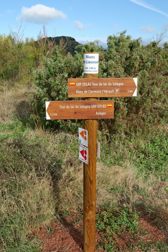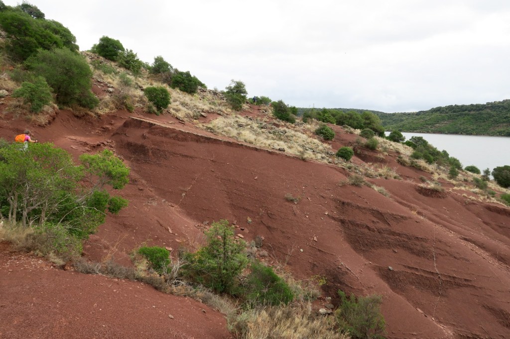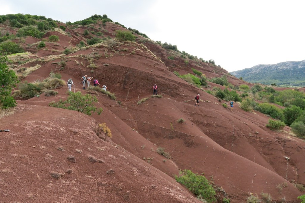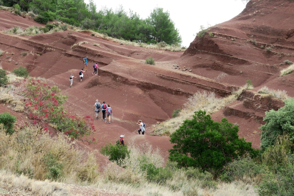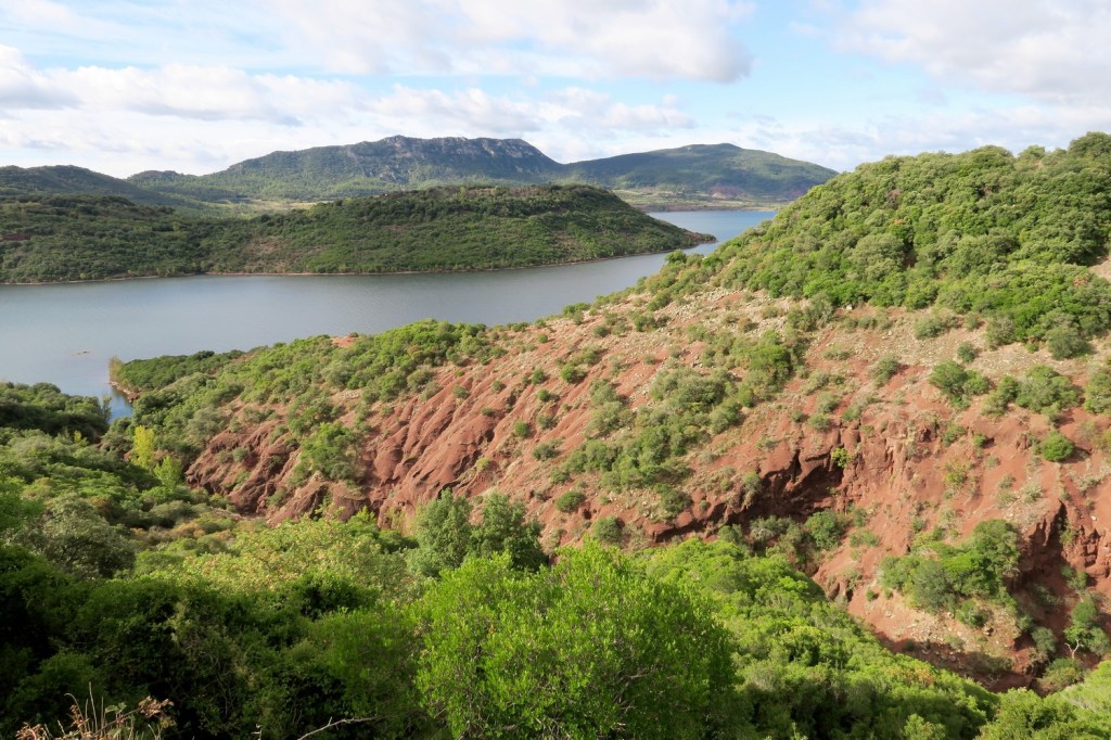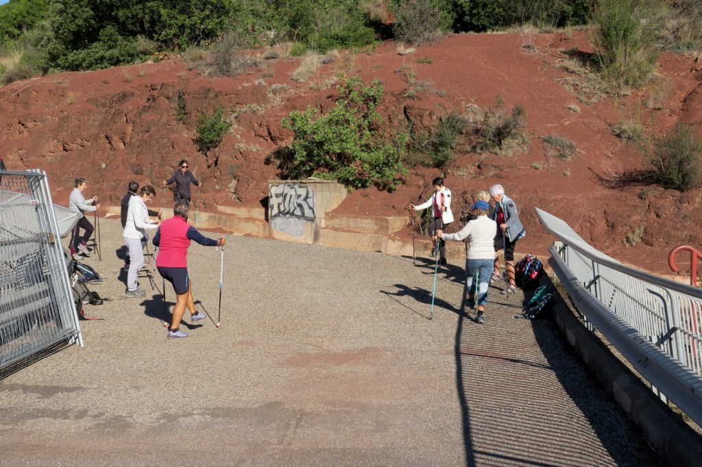 Le mercredi matin, nous nous rendons au barrage, qui n’est pas destiné à produire de l’électricité, mais sert de retenue d’eau. En effet, le lac du Salagou est un lac artificiel créé dans les années 1960 pour irriguer les terres environnantes et réguler les crues de l’Hérault et du Lergue . De là nous gagnons une piste en balcon pour arriver au village des Vaihlès, en cours de restauration. La pluie s’invite lorsque nous arrivons à la chapelle des Clans, mais le soleil réapparaît vite et nous effectuons le retour en longeant le lac. Quelques pans de murs, vestiges du village des Pradines, rappellent l’activité humaine présente avant la mise en service du barrage. Nous retrouvons la piste qui nous ramène à notre point de départ après un parcours de 15km .