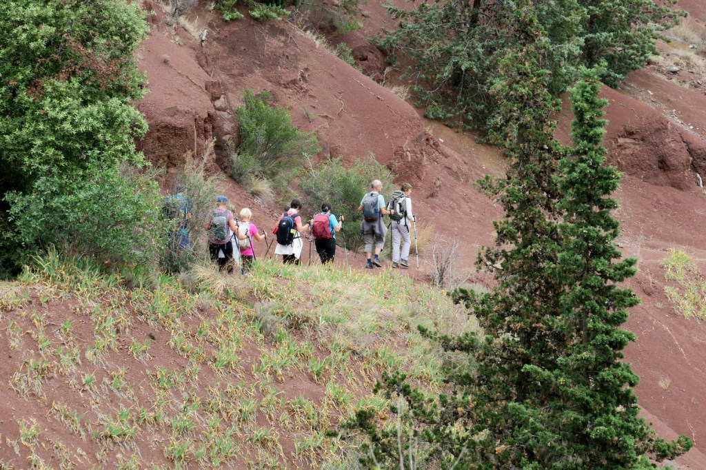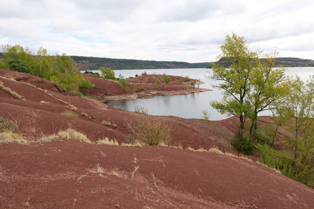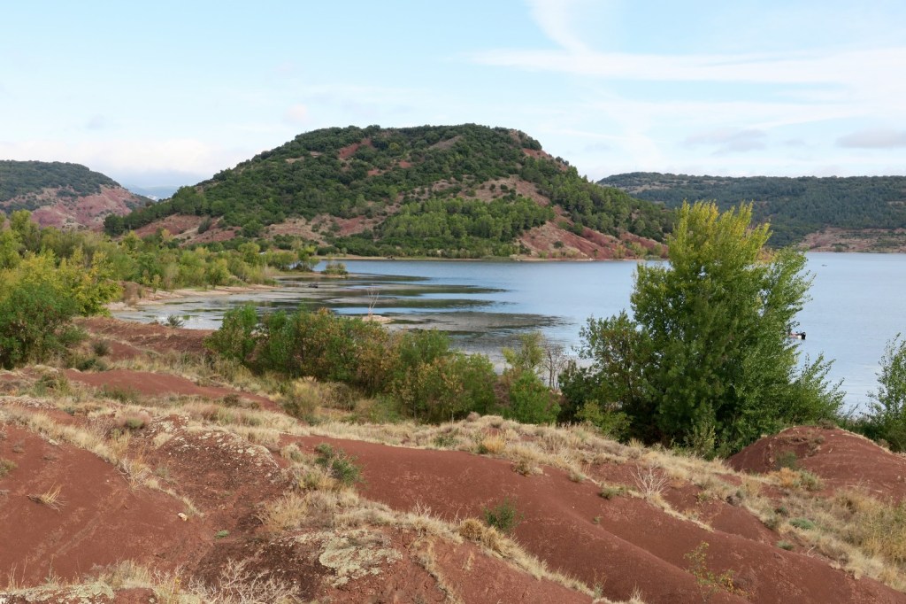 Le jeudi, nous partons du camping afin de parcourir la rive opposée à celle de la veille. Après notre échauffement, nous gagnons la presqu’île de Rouens. Le paysage est très différent de la veille. La terre, très rouge donne l’impression d’être sur la planète Mars! Petit à petit le sentier disparaît pour laisser place à des replis et à des failles qui nous font faire un peu de « trail ». Nous quittons cette presqu’île pour pique-niquer. Nous trouvons un endroit en bordure du lac où nous observons des écrevisses en balade ! Nous reprenons notre chemin pour faire le tour de la presqu’île de Sure, sentier sans difficulté. Nous apercevons, de l’autre côté du lac le village de Celles et la route qui plonge dans l’eau ! Ce village avait été évacué pour être englouti mais les eaux ne sont pas montées si haut et il est en cours de restauration. Nous regagnons le camping par une large piste et franchissons le petit col des Détroits . Nous prenons un repos bien mérité après les 17km de ce parcours !