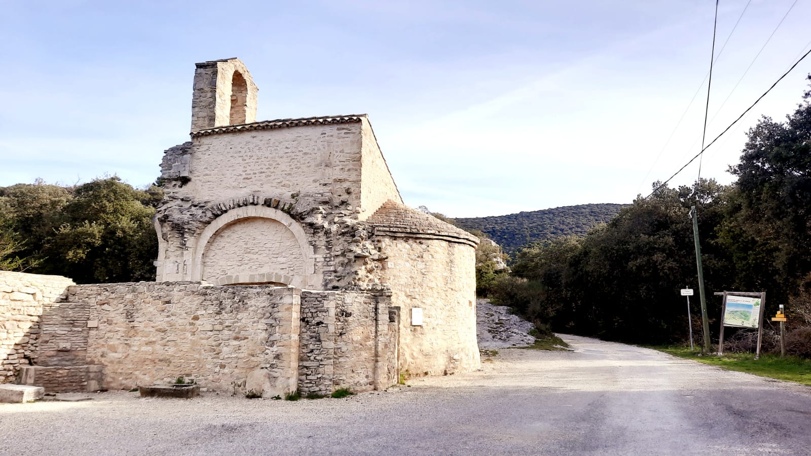 Après avoir longé des vignes, nous prenons un petit chemin en sous-bois qui nous conduit au Prieuré Saint Blaise de Montbrison s/Lez. Situé sur une ancienne voie romaine, le prieuré clunisien du 12ème siècle est construit sur l’emplacement d’une église plus ancienne dont on peut voir les soubassements. Cette église avait elle-même été construite sur une ancienne villa gallo-romaine.