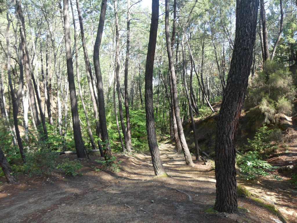 Nous grimpons au sommet du massif par un petit canyon pour y prendre un pique-nique bien mérité. Nous commençons à redescendre vers notre point de départ alors que les nuages se regroupent au dessus du Ventoux. La forêt est un havre de paix et le chemin doux aux orteils. Petit détour par le lac où un groupe d’élèves en sortie scolaire se détend. Merci à Henri pour ces découvertes dans un massif ou les dizaines de chemins qui partent dans tous les sens procurent des imprévus. J.M.