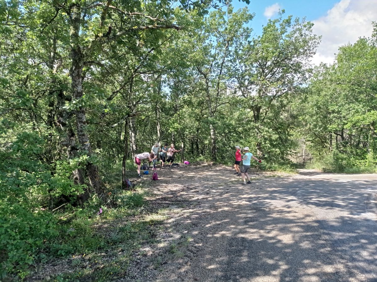 Ensuite, montée sévère à travers bois en contemplant Condorcet et son vieux village, ainsi que la vallée où sinue l’Eygues, argileuse actuellement. Retour en boucle en descente, puis par le même chemin mais en poussant un peu plus sur les bâtons. La séance s’est terminée, comme de coutume, par les étirements. EM