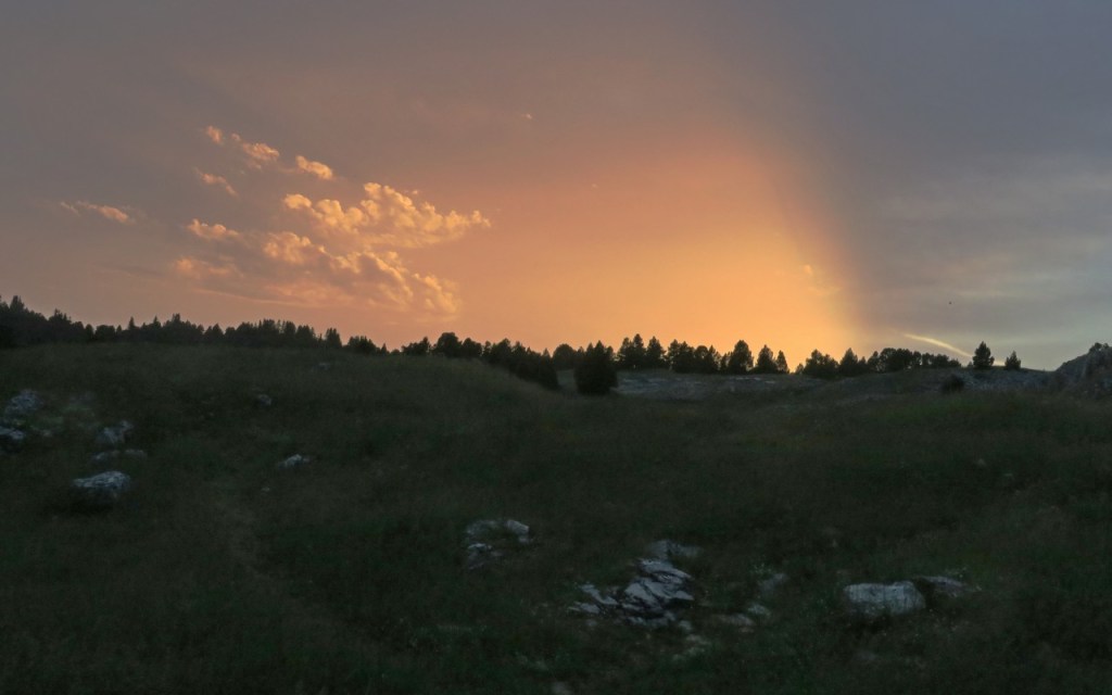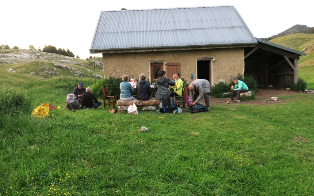 Un peu avant 20 heures, nous quittons le troupeau pour nous rendre à la cabane de Pré Peyret située à 1590m. Certains montent la tente pendant que d’autres s’installent à l’intérieur de la cabane. Dîner convivial à l’extérieur, chacun sachant qu’il venait de vivre une après-midi exceptionnelle et unique.