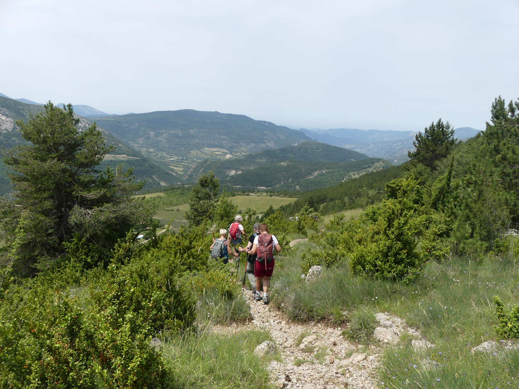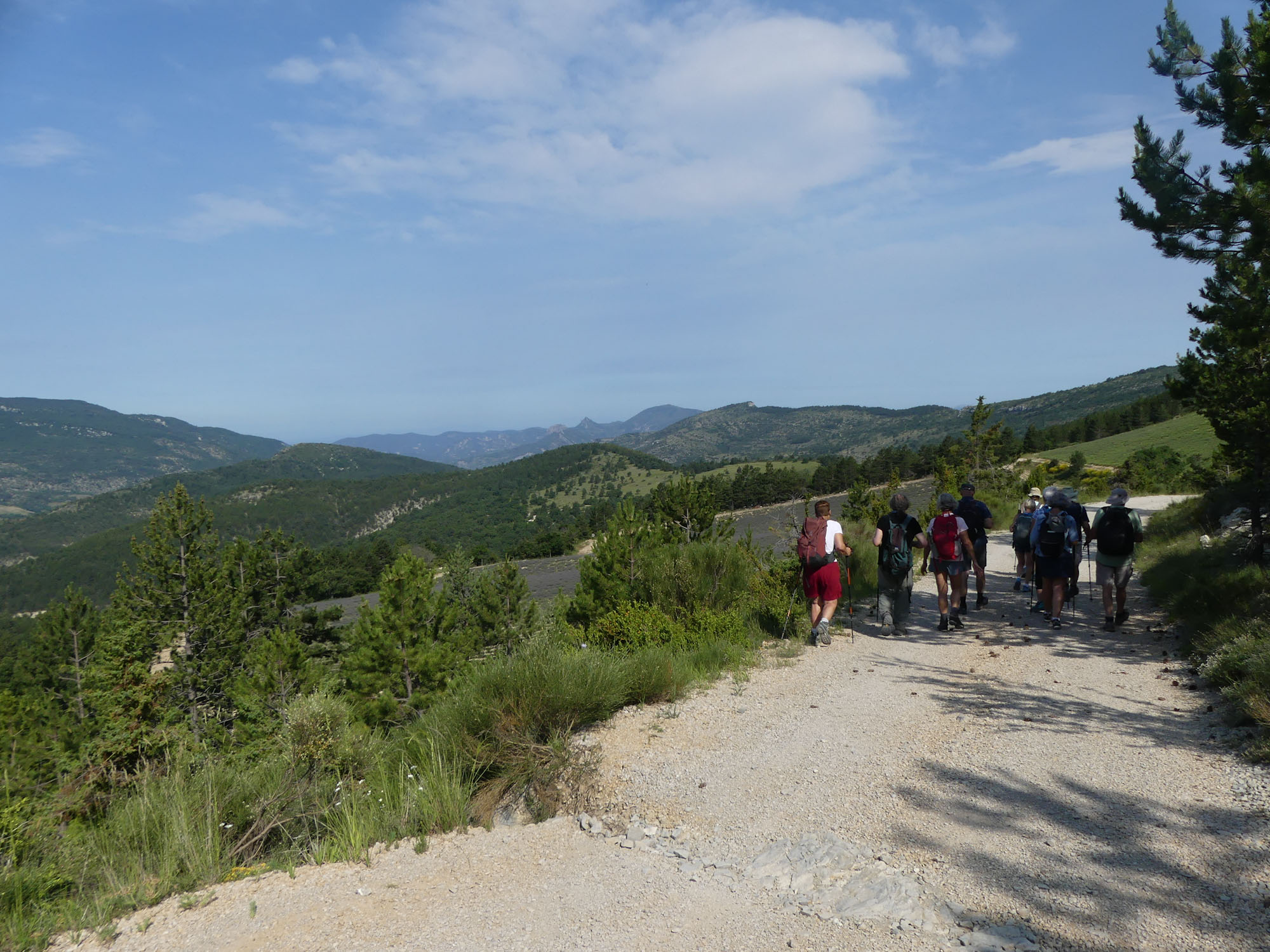 Traversons de petites forêts de pin à l’adret