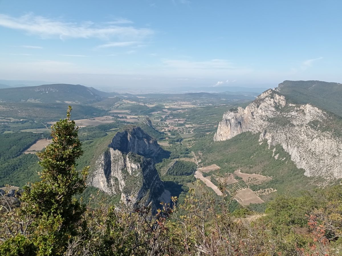 La montée se poursuit jusqu’à un replat situé très près du petit Pomerolle. Une vue magnifique sur le village de Saou et les falaises dédiées à l’escalade.