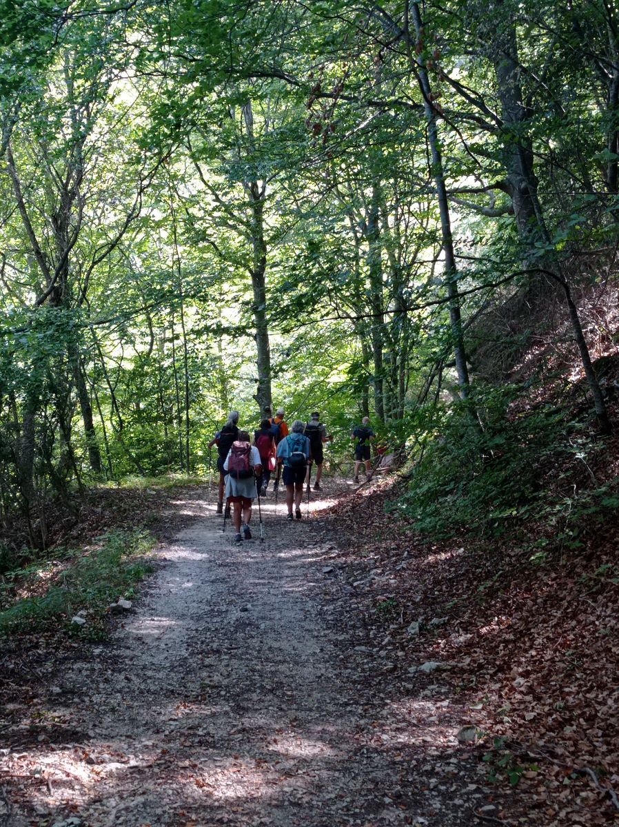 Notre randonnée se fera aujourd’hui dans la forêt de Saou qui s’étend sur 2500 hectares. Du parking nous montons tranquillement par une large piste tracée au milieu de nombreuses espèces, notamment des pins et des hêtres.