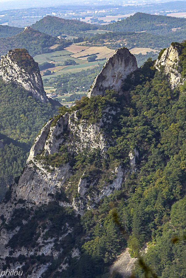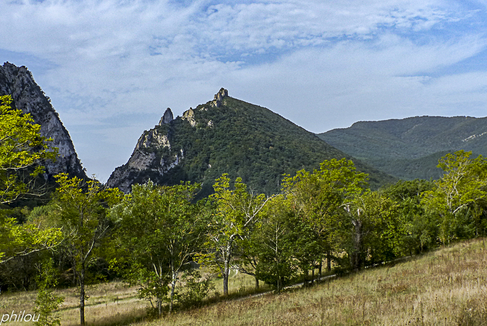 La forêt de Saou, domaine de 2500 hectares, propriété du département de la Drôme depuis 2003, sera le but de notre randonnée. Rapidement après le départ, le chemin s’élève brutalement et la pente sera très soutenue jusqu’à notre arrivée à la chapelle Saint-Médard, 400 mètres plus haut. Lieu de pèlerinages au 19ème siècle la chapelle est dédiée au patron des agriculteurs . La vue sur le synclinal perché (partie en creux d’un plissement géologique) faisant penser à une coque de navire renversée est magnifique, avec au fond, les trois Becs, vers le sud le Grand Pomerolle et vers l’ouest Roche Colombe.