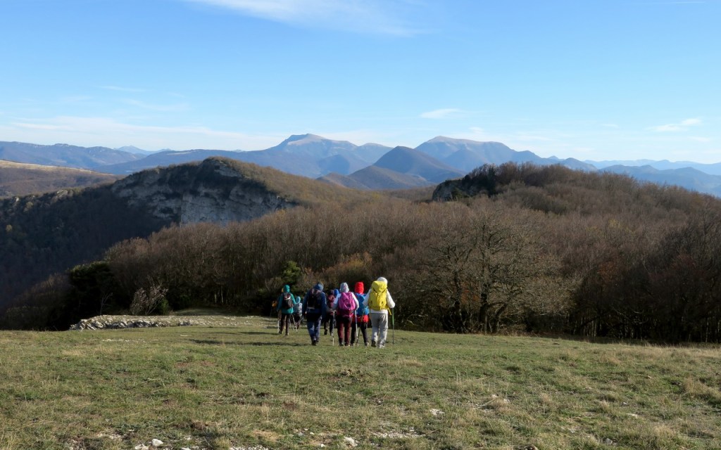 Après une pause pour refaire le plein d’énergie, nous atteignons le haut du village et empruntons le GRP qui nous conduira sur les crêtes de la Montagne du Poët après 400 m d’ascension.