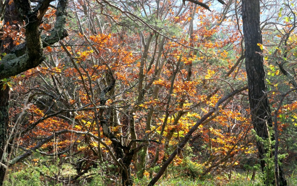 Nous suivons la crête vers l’est, bousculés par les rafales du mistral. De magnifiques hêtres en cépées bordent le chemin. Eux aussi connaissent le mistral depuis toujours et ont poussé penchés vers le sud.