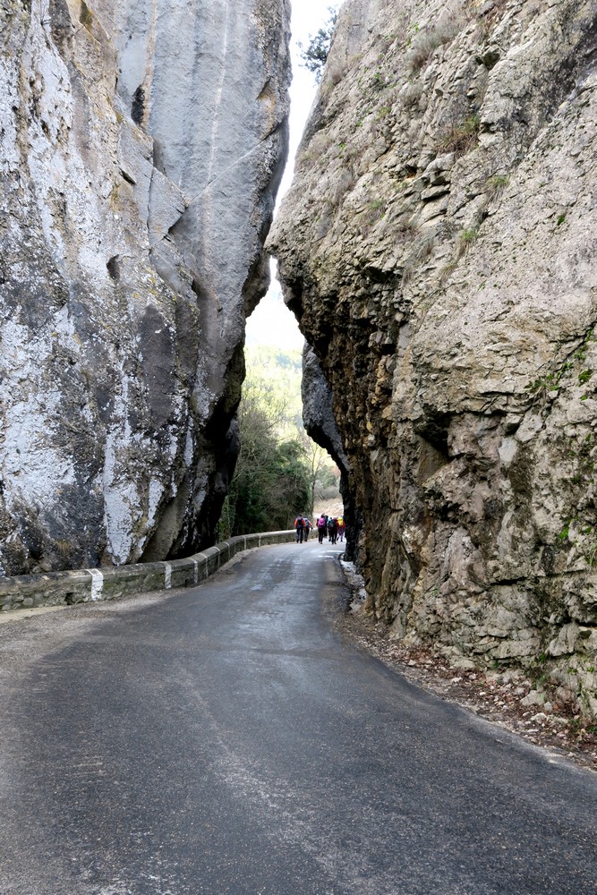 Après être passés sous la clue (cluse) à la sortie du parking, nous avons franchi le petit pont au-dessus du ruisseau de Derboux. Puis nous avons pris le chemin qui monte sur la montagne de Bluye.