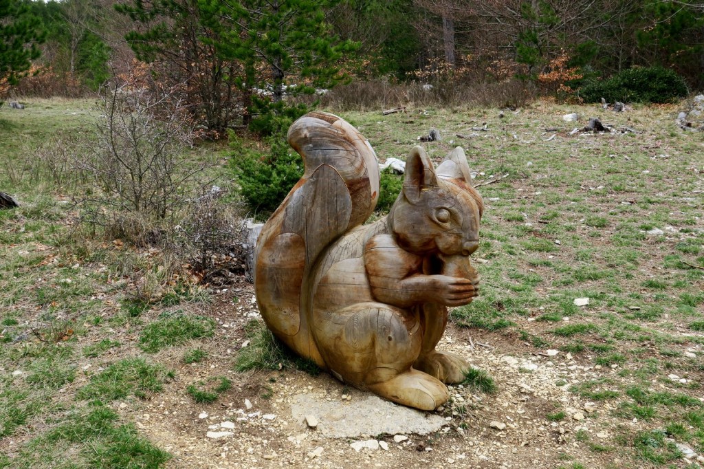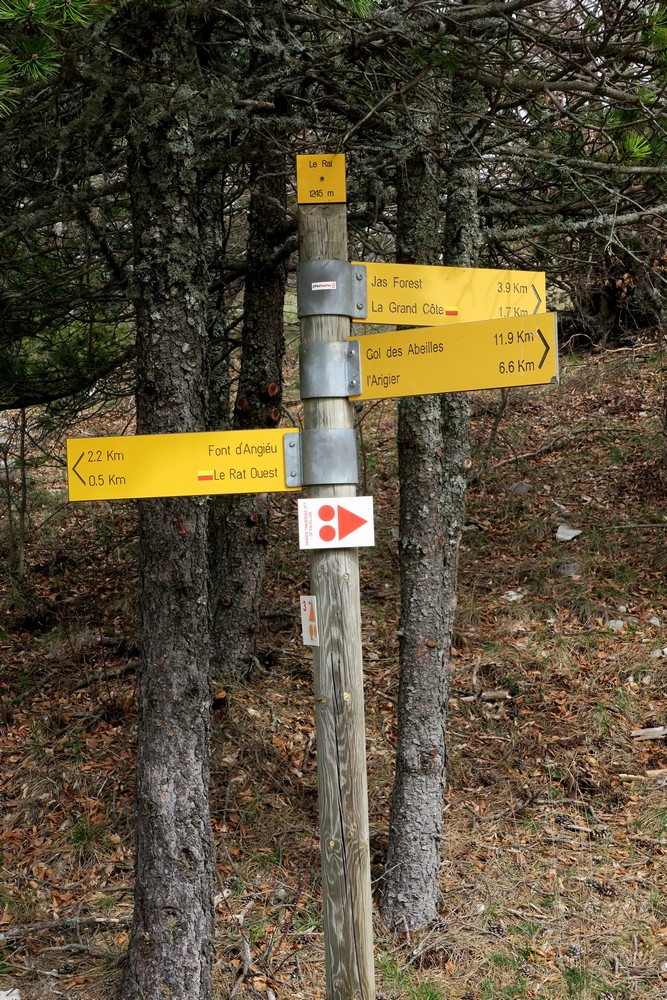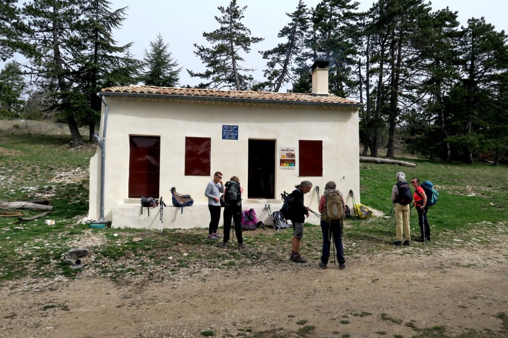 Nous avons pris un petit sentier (GR 91B) à travers les pins et les hêtres pour arriver à la fontaine d’Angiou, une des nombreuse sources du Ventoux. Après une montée un peu soutenue et un chemin en balcon nous sommes arrivés au Rat, ancienne cabane forestière restaurée en refuge d’ étape pour tous types de randonneurs.