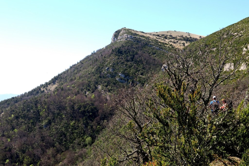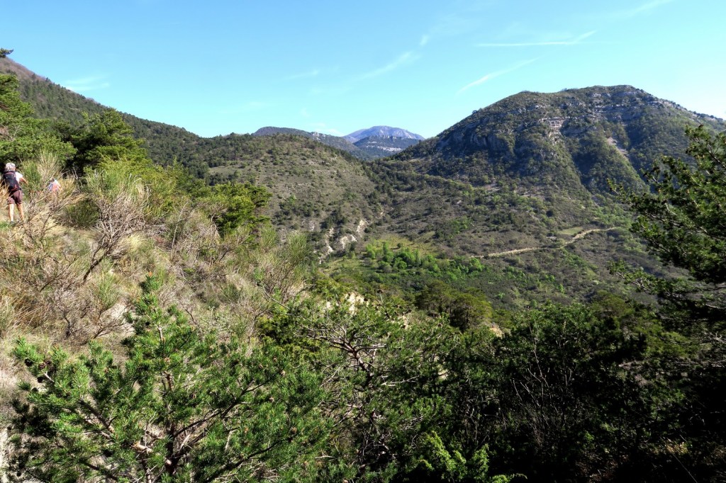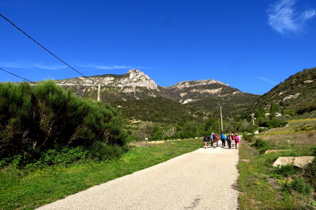 Le second groupe a continué vers la ferme Favier et traversé le ravin de Meruet pour atteindre le col de la Bessonne et suivre la piste jusqu’au col de Fonturière à 775m. De là, direction la Montagne de Sauveginoux dans des lacets au milieu des buis et éboulis pour retrouver un sentier plus tranquille en arrivant au Clos du Puits.