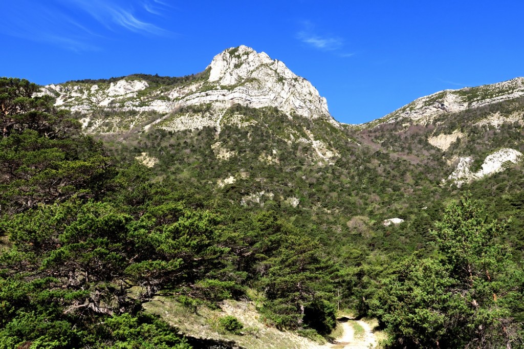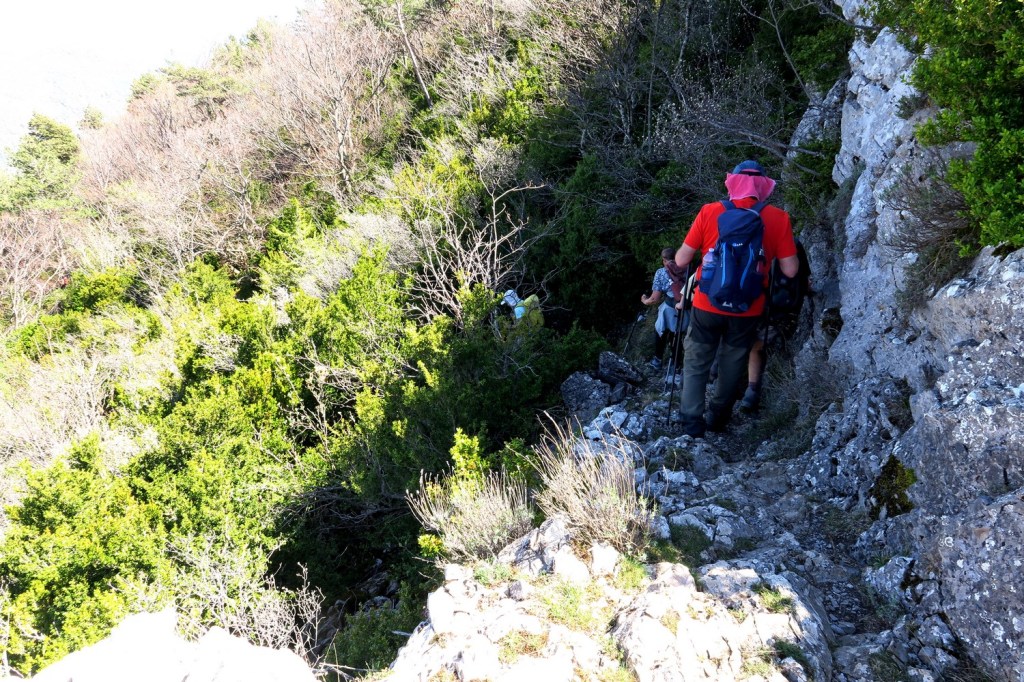 Nous faisons notre pause pique-nique suivie d’une petite diversion vers le sommet du Cougoir, tout près, à 1214m d’altitude. Les deux groupes prennent le même chemin de retour par la crête des Rochers du Clos du Buis pour atteindre la trouée du Pas du Loup, sentier assez pentu qui demande une attention permanente.