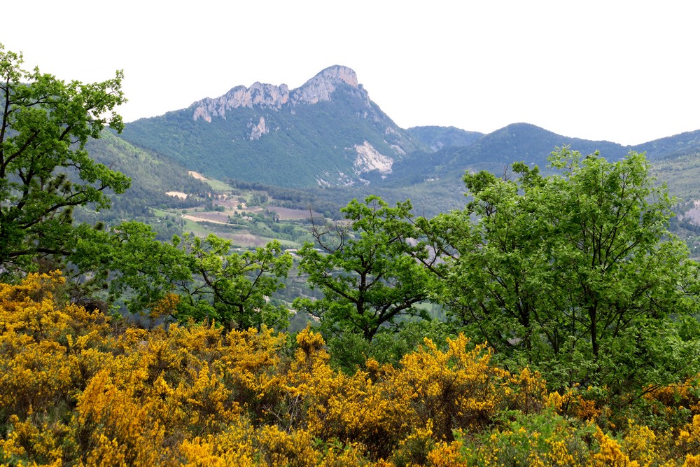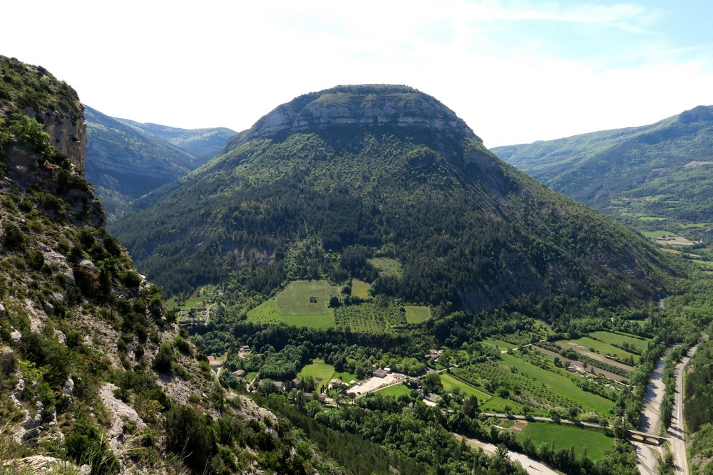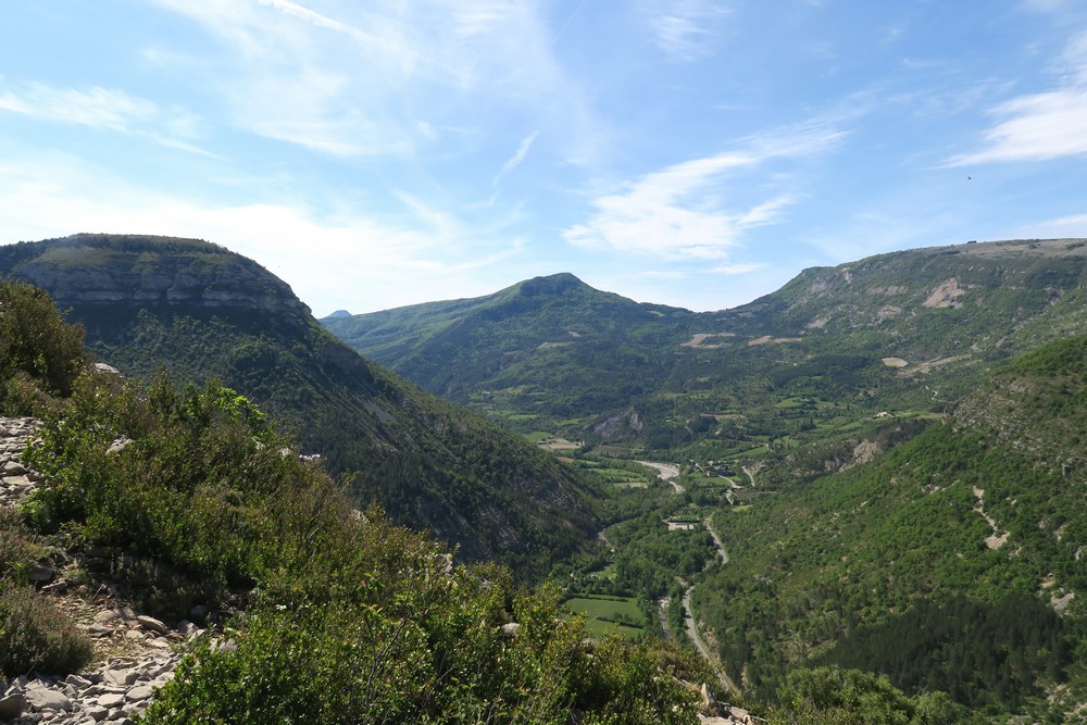 Nous quittons les gros blocs et gagnons un chemin qui nous amène à une replat dominant la confluence de l’Oule et de l’Eygues pour une petite pause.