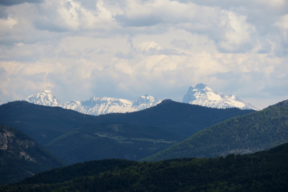 Nous remontons ensuite vers le nord en haut de la falaise jusqu’au sommet où nous nous restaurerons. La vue s’étend jusqu’au Dévoluy.