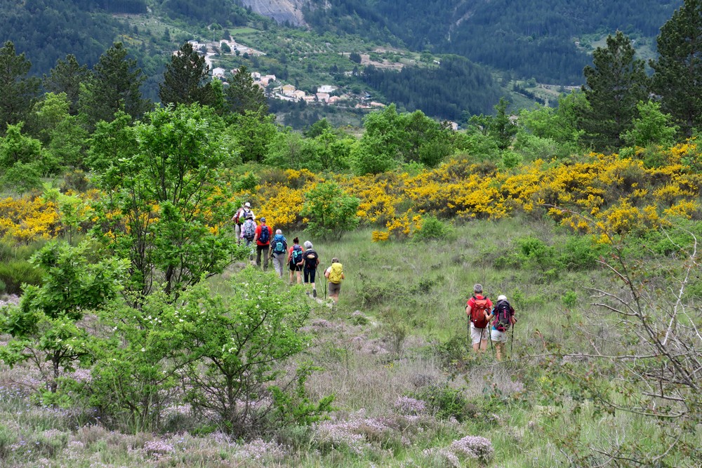 Descente jusqu’au col de St May puis nous prenons le GR Tour des Baronnies qui regagne Rémuzat en longeant le bas de la grande falaise de St Auban. Un dernier arrêt à la chapelle St Michel avant de descendre au village.