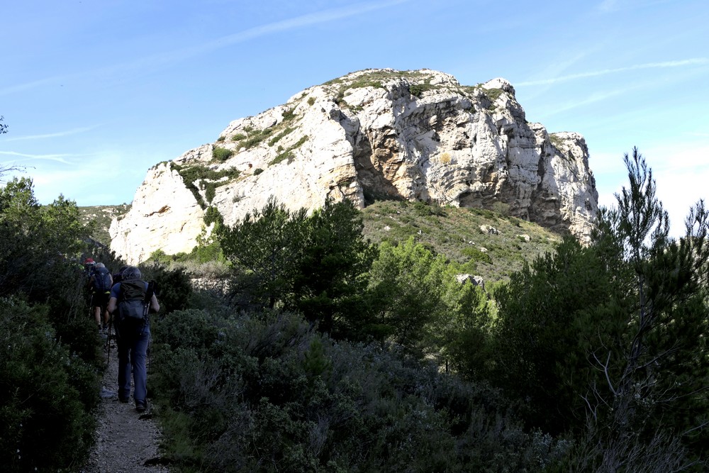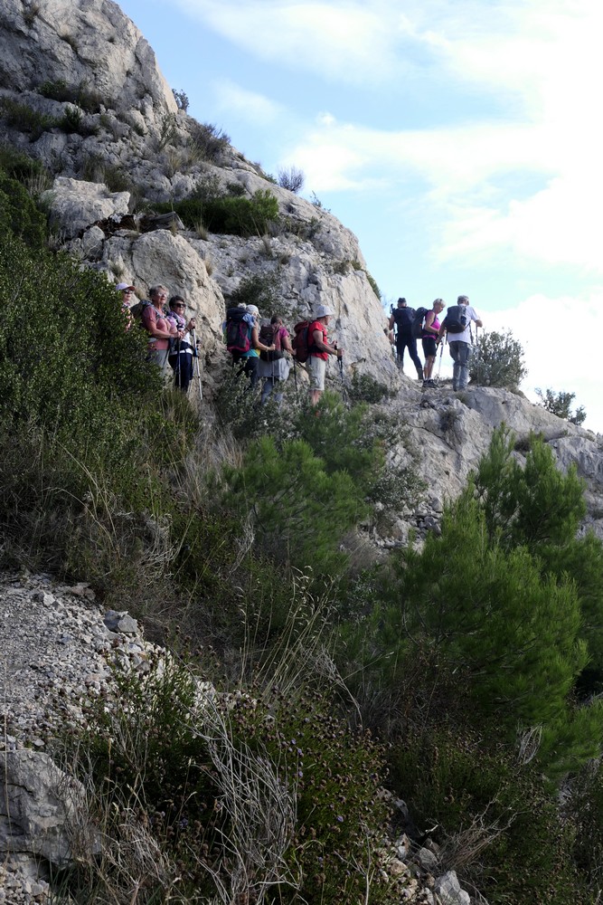 Un premier jour de OUF ! Car on croyait voir venir la pluie demain…Parfois grimpés sur des larges pistes ou des chemins de pierre, à la rencontre du Fort de Niolon perché à 160m au dessus de la mer…. Une descente dans un vallon étroit jusqu’au minuscule port de Méjean… si bien mis en scène par Robert Guédignan dans le film La Villa. Sentier douanier vers Niolon sous un soleil ardent… chemins pentus, enjambées rocheuses, descentes et on recommence…. mer calme…. découverte des calanques d’Erevine, du Riflard et du Jonquier enjambées par les viaducs du chemin de fer.