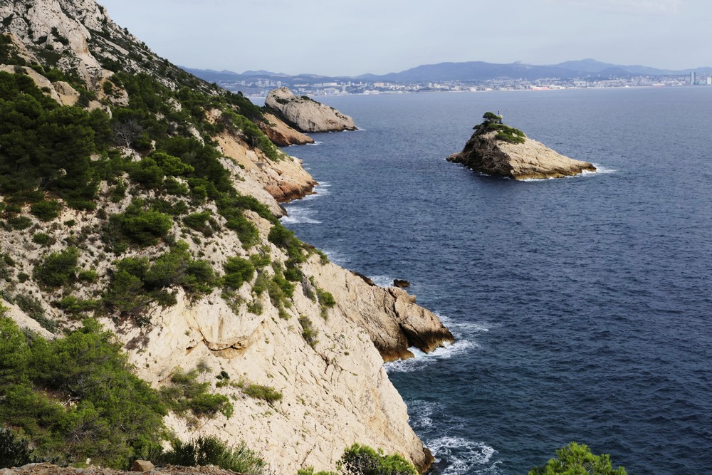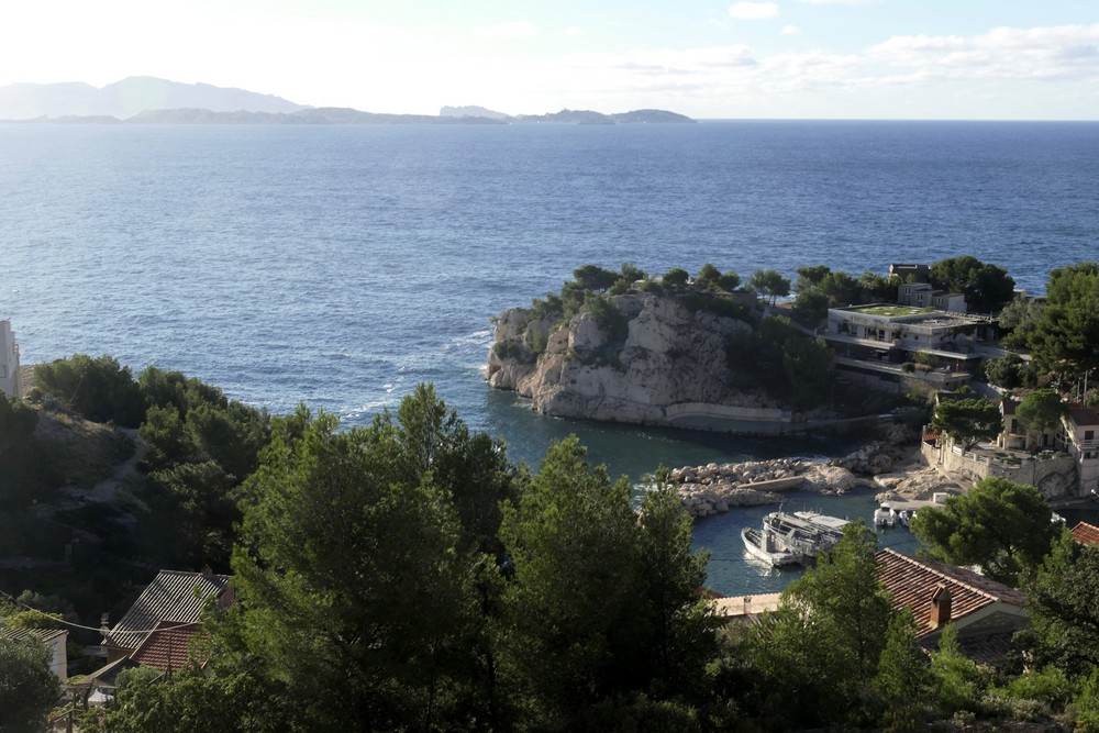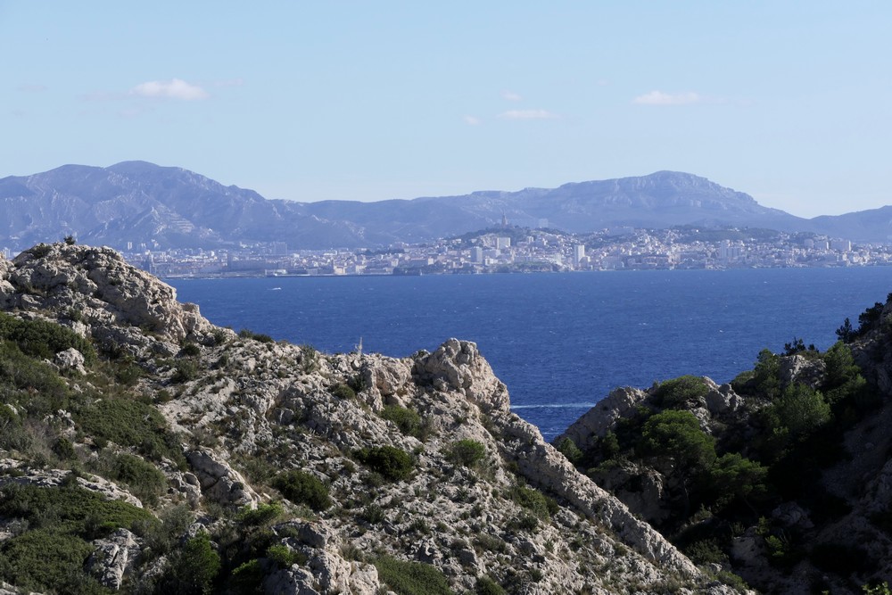 Le quatrième jour d’escapade dans les calanques et garrigues profondes entre Niolon et l’Estaque, sans jamais s’éloigner du petit train de la Côte Bleue, avec Marseille à l’horizon chapeautée de chantilly… et la bonne mère qui veille sur cette rade aux îles bien connues d’If et du Frioul… Fort en ruines de Figuerolles … mer redevenue si calme et si bleue.