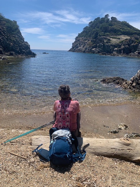 Nous trouvons un endroit ombragé pour le pique-nique et, après cette pause, nous reprenons le sentier qui nous mène à la calanque du Brégançonnet où nous ne pouvons que savourer ce calme et nous émerveiller de cette eau turquoise qui donne bien envie de s’y tremper!